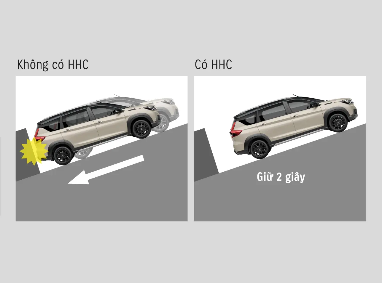 Hỗ trợ phanh khi chuyển từ bàn đạp phanh sang chân ga trong vòng 2 giây khi khởi hành lên dốc, chống trôi về phía sau, hiệu quả ngay cả trên những con dốc gập ghềnh