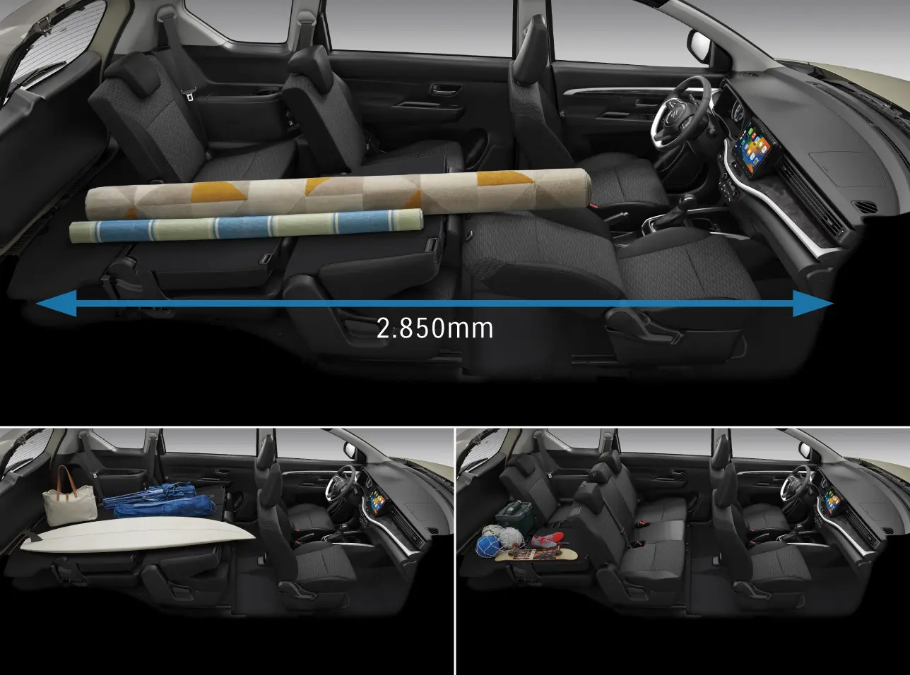 Không gian 7 chỗ rộng rãi thoải mái ngay cả ở hàng ghế thứ 3. Khả năng tùy chỉnh linh hoạt giữa các hàng ghế có thể tạo ra không gian chuyên chở vượt bậc lên đến 803L, tối ưu không gian khoang hành lý cho hành trình của cả gia đình.​